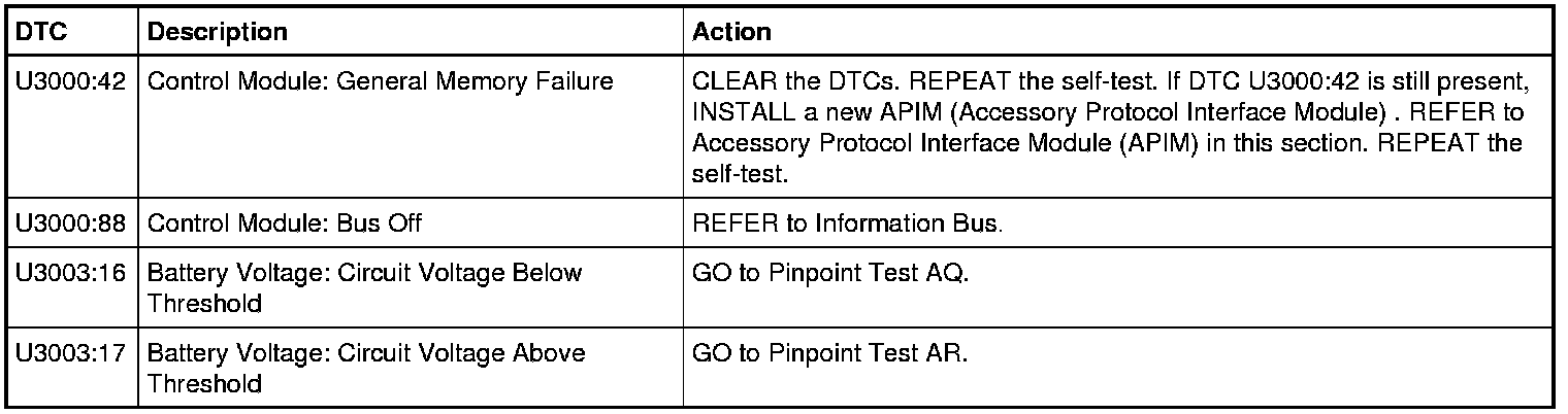 Accessory Protocol Interface Module (APIM) DTC Chart