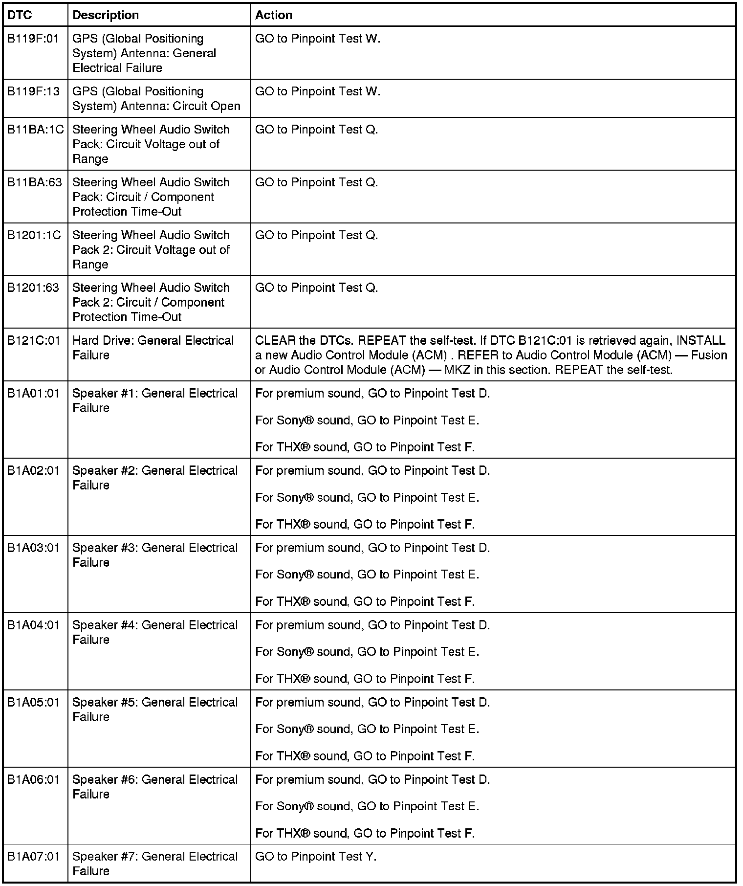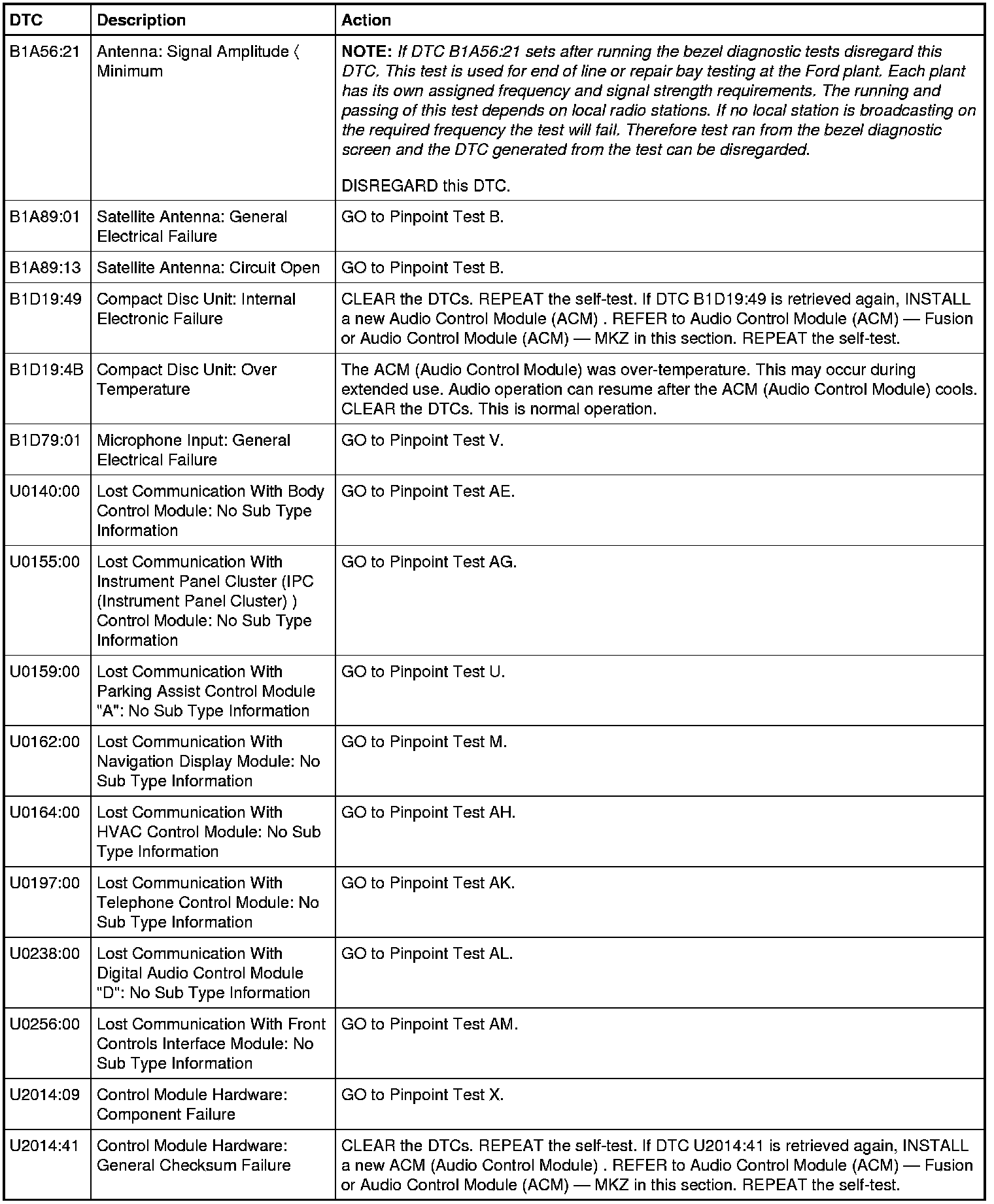 Audio Control Module (ACM) DTC Chart - Navigation