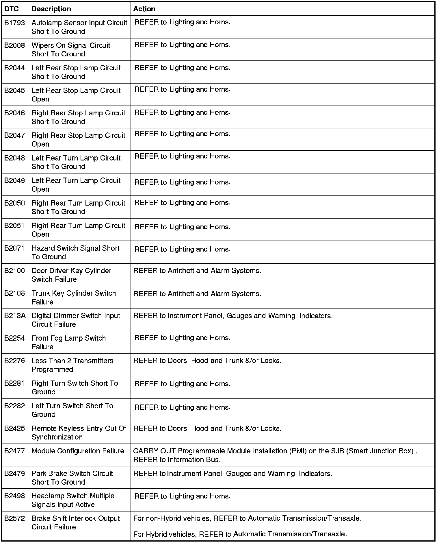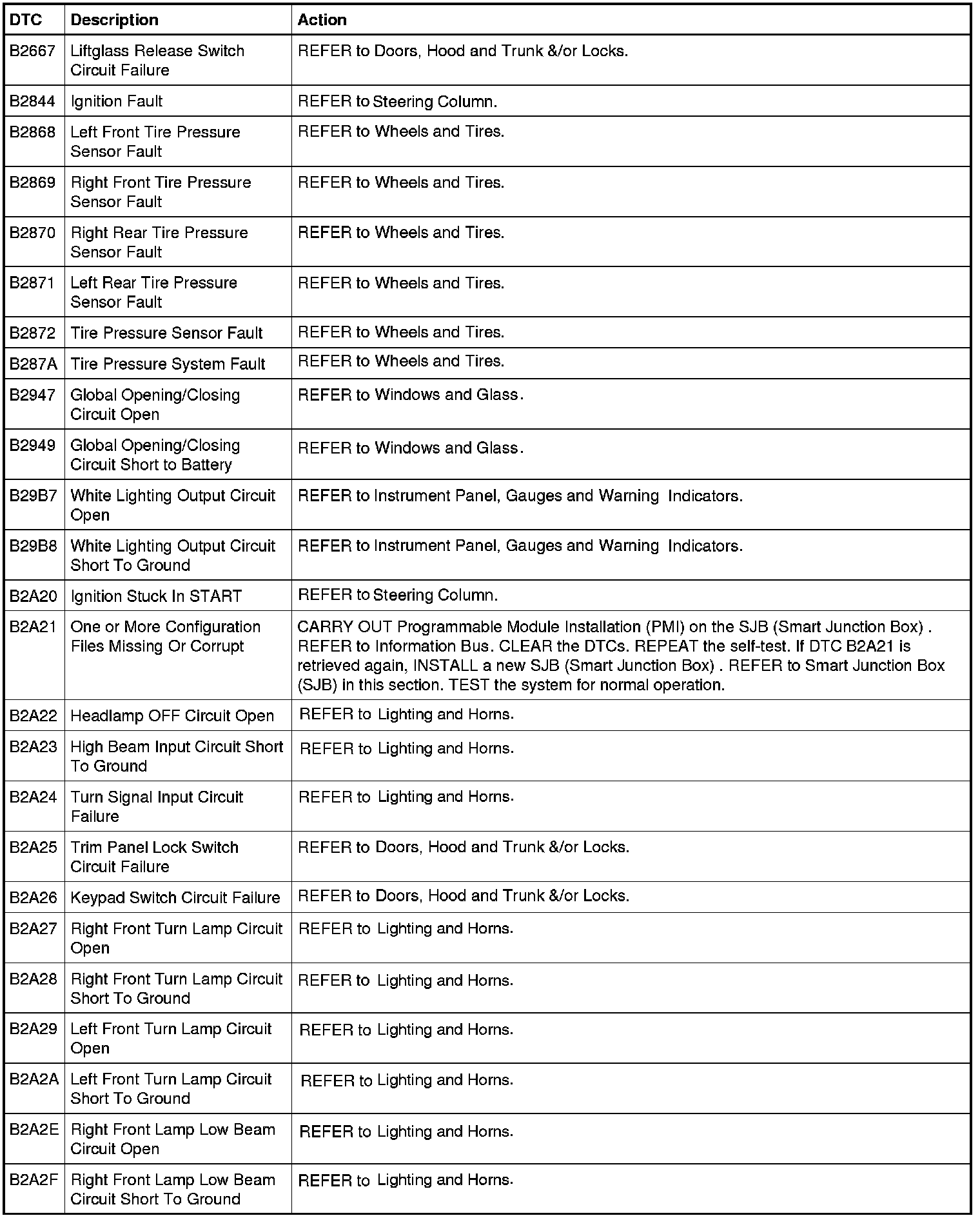 Smart Junction Box (SJB) DTC Chart