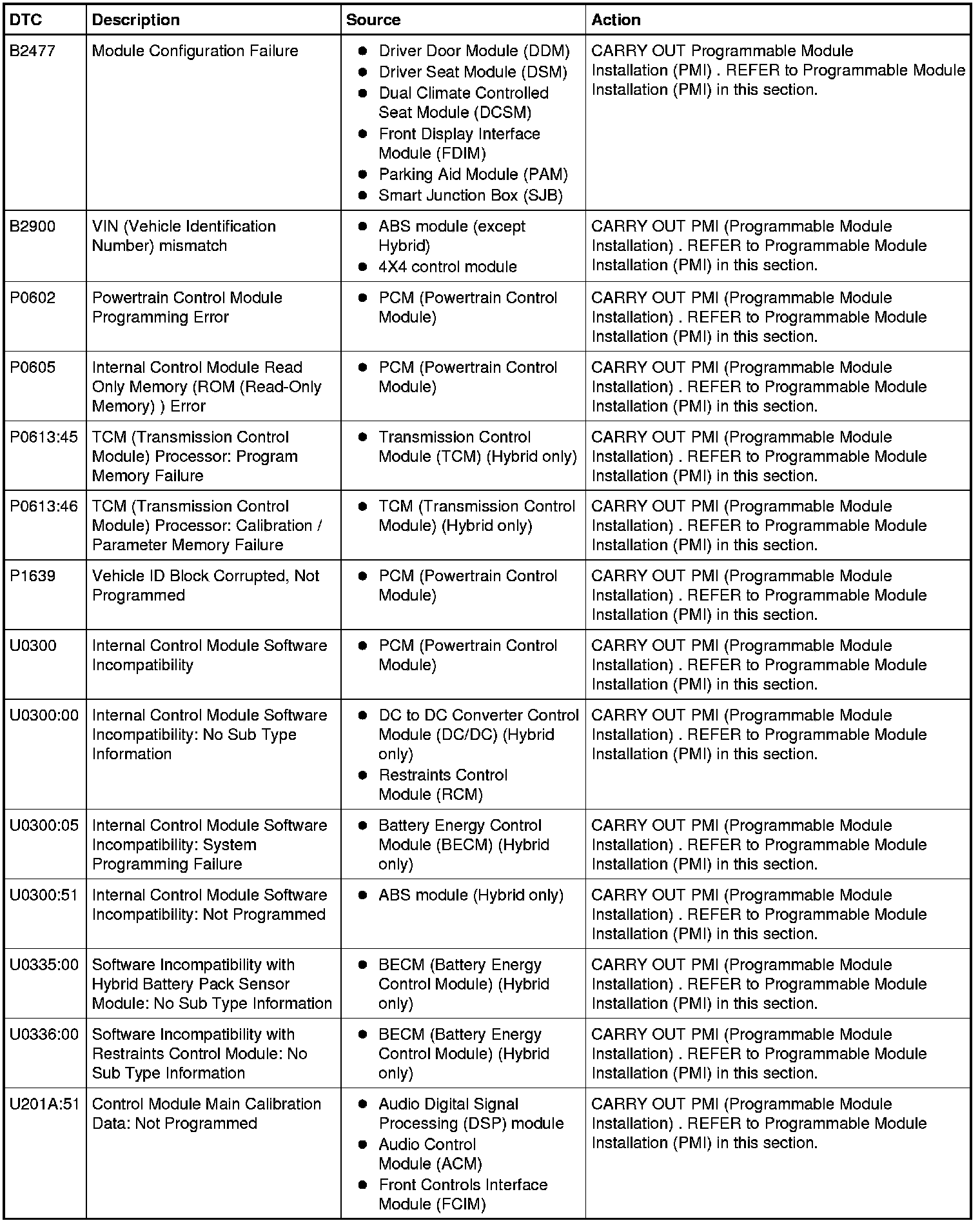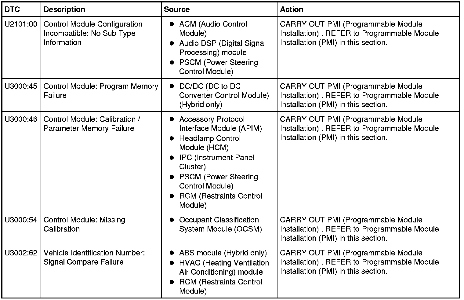 NOTE: Some modules on this vehicle utilize a 5-character DTC followed by a 2-character failure-type code. The failure-type code provides information about specific fault conditions such as opens, or shorts to ground. Continuous Memory DTCs have an additional 2-character DTC status code suffix to assist in determining DTC history.