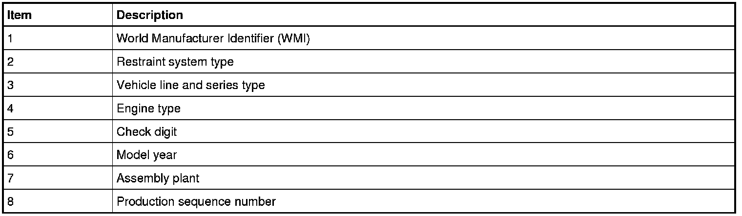 The fourth VIN (Vehicle Identification Number) position identifies the vehicle restraint system used.