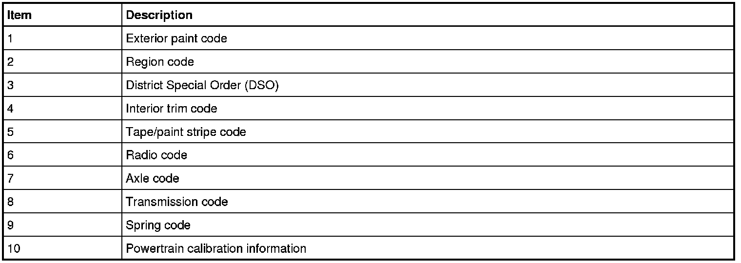 Powertrain calibration information is printed in the lower right corner of the VC (Vehicle Certification) label. Only base calibration information is printed. Revision levels will not appear, however, they can be obtained through a scan tool using the most current software revision.
