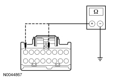 - Measure the resistance between DCSM (Dual Climate Controlled Seat Module) C3305A-A, circuit CHS07 (GY/BU), harness side and ground.