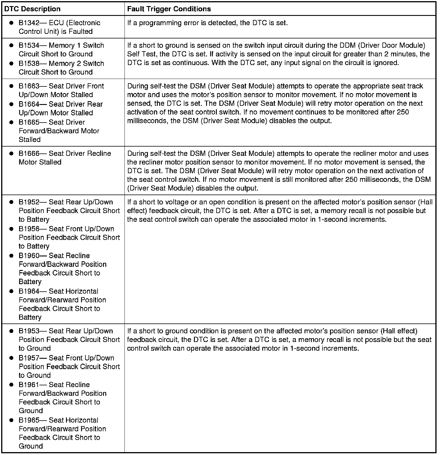 - NOTE: If the DSM (Driver Seat Module) detects a fault while carrying out this step, the associated motor may operate in one-second intervals.