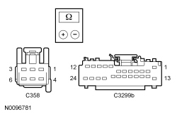 - driver seat position sensor C358-4, circuit RPS13 (GN/OG), harness side and ground.