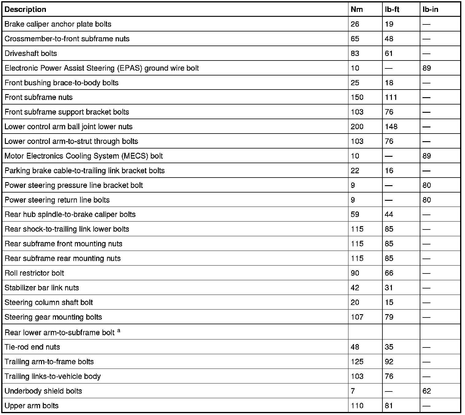 Torque Specifications