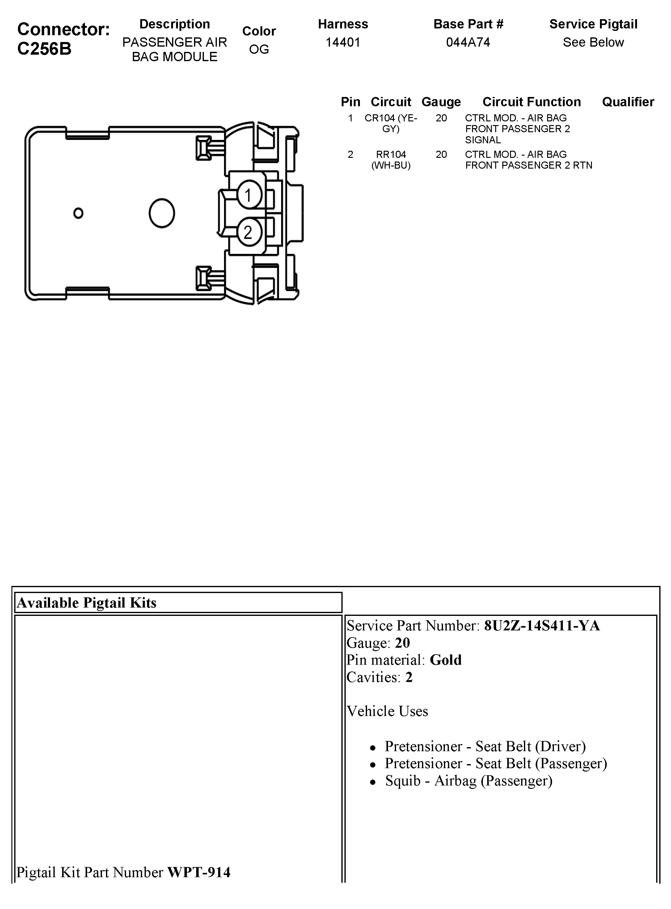 C256B Passenger Air Bag Module
