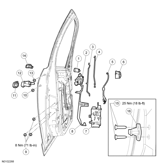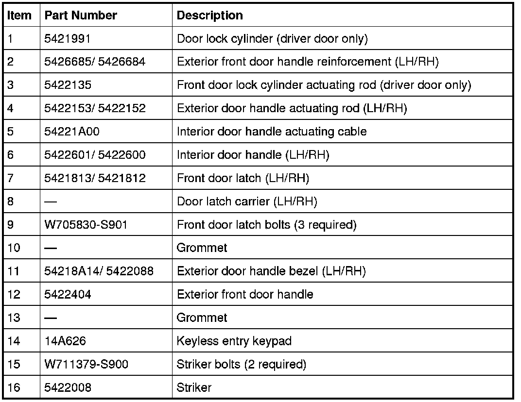 Front Door Handles, Locks and Latches - Exploded View