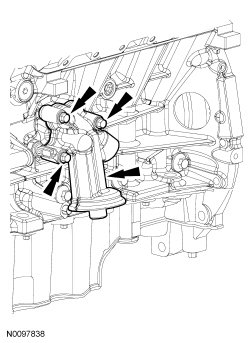 NOTICE: During engine repair procedures, cleanliness is extremely important. All parts must be thoroughly cleaned and any foreign material, including any material created while cleaning gasket surfaces, that enters the oil passages, coolant passages or the oil pan, can cause engine failure.