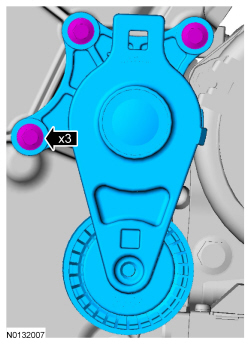 117. Install the accessory drive belt tensioner and the 3 bolts.