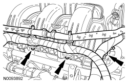 155. Attach the wiring harness retainers to the upper intake manifold.