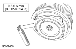 12. Measure and adjust the clutch air gap by removing or adding A/C clutch hub spacers.