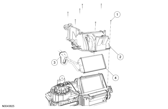 1. Remove the heater core and evaporator core housing. For additional information, refer to Heater Core And Evaporator Core Housing .