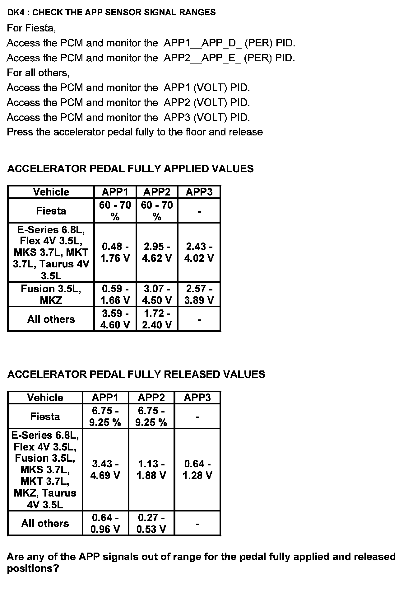Test DK: Accelerator Pedal Position (APP) Sensor