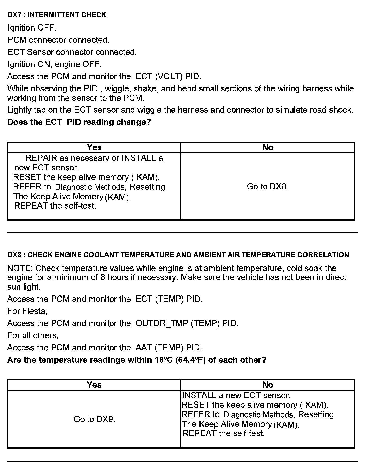 Test DX: Engine Coolant Temperature (ECT) Sensor