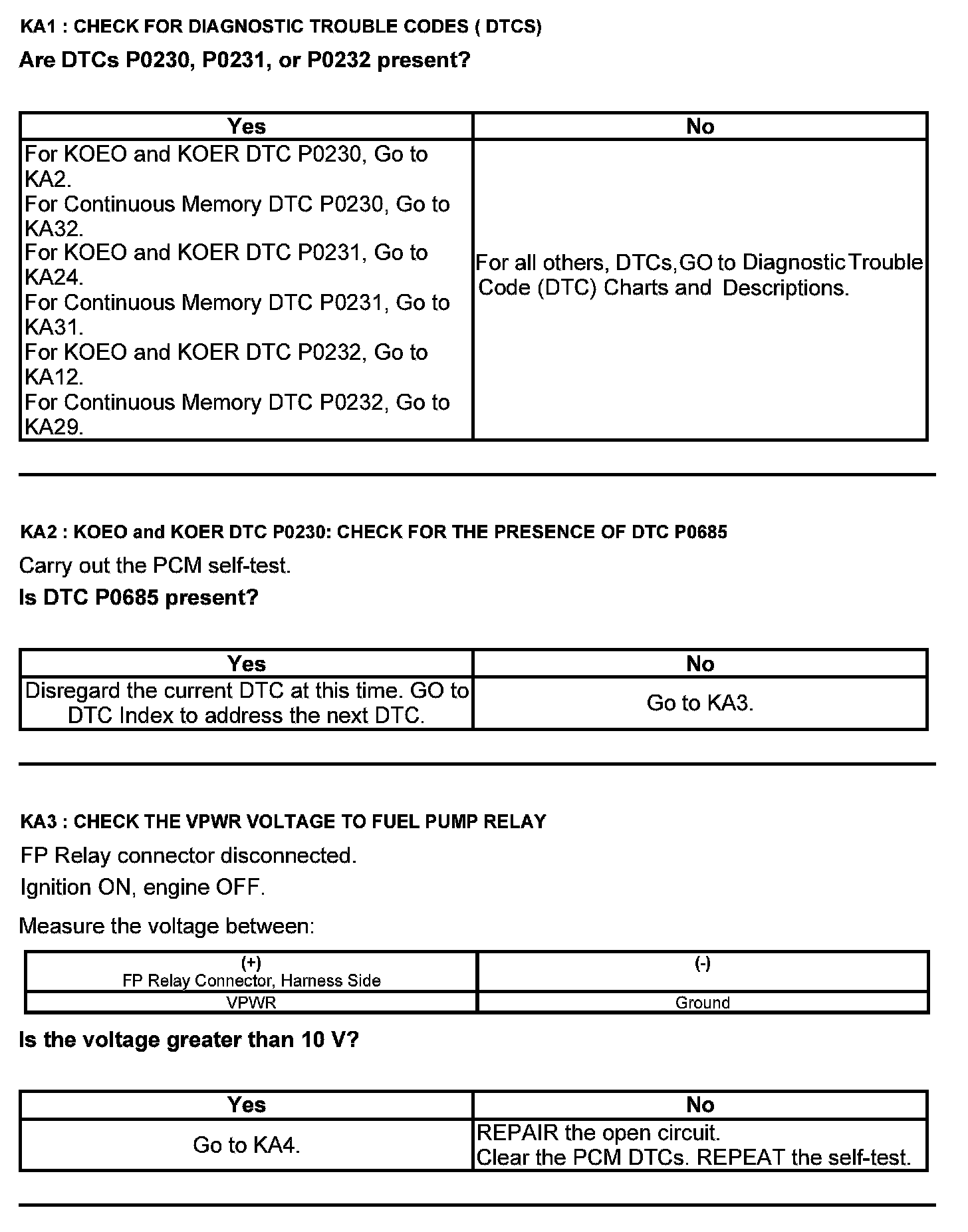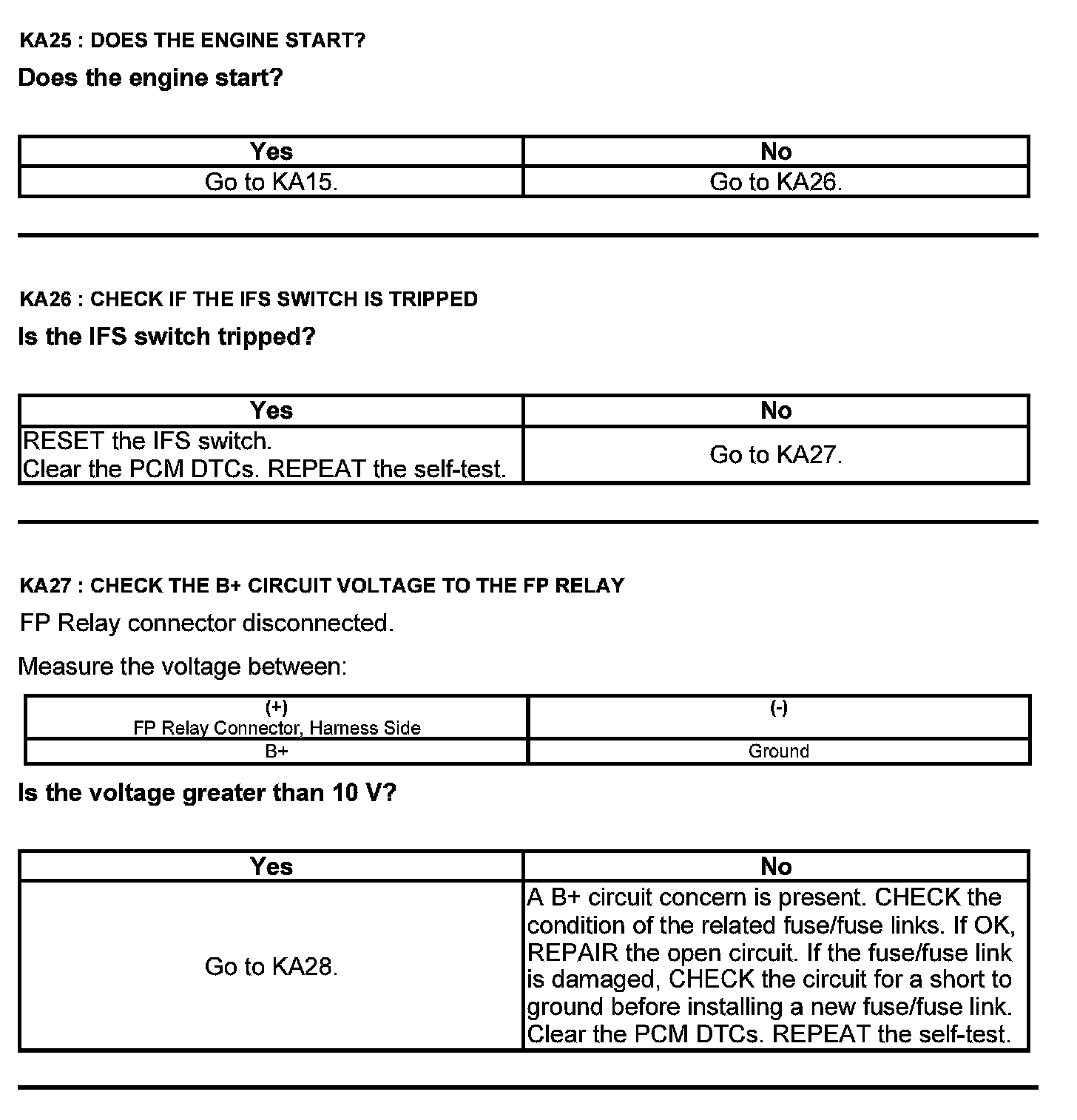 Test KA: Fuel Pump (FP) Relay