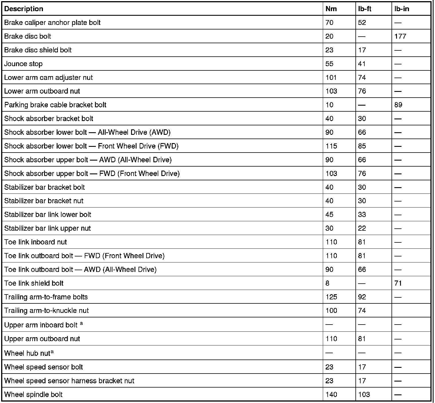 Torque Specifications