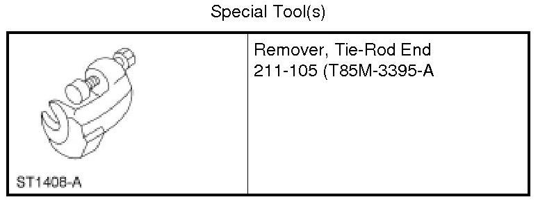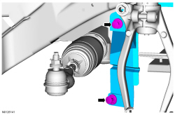 7. NOTICE: Do not use a hammer to separate the tie-rod end from the wheel knuckle or damage to the wheel knuckle can result.