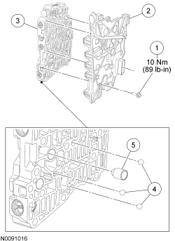 5. NOTICE: Remove the valves by tapping the valve body on the palm of the hand to slide the valves out of the bores or by threading a 4-mm bolt into the valves and pulling them out. It may be necessary to remove the valves and springs using a pick. If it is necessary to use a pick, use extreme caution to prevent damaging the valves or valve bores. If necessary, disassemble parts of the main control valve body in small groups. Take special care when handling the main control components, since they are the most precise and delicate parts of the transaxle. Neatly arrange the parts as they are removed to avoid mixing similar pieces.