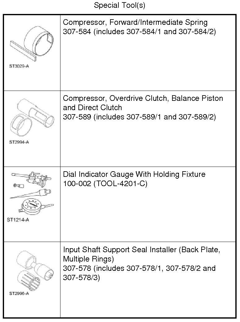 9. Remove the Overdrive Clutch, Balance Piston and Direct Clutch Compressor 307-589/1 and Forward/Intermediate Spring Compressor 307-584/2.
