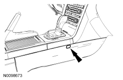 9. Insert a suitable tool into the access hole, depress the brake shift interlock override mechanism on the selector lever, apply the brake, depress the button on the selector lever knob and move the selector lever into NEUTRAL.