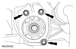 6. Remove the 3 LH side insulator or bracket-to-rear axle differential bolts.