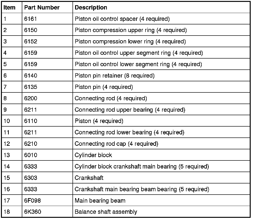 NOTE: Assembly of the engine requires various inspections/measurements of the engine components (engine block, crankshaft, connecting rods, pistons and piston rings). These inspections/measurements will aid in determining if the engine components will require replacement.