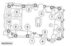 40. Install the remaining oil pan bolts and tighten the oil pan bolts in the sequence shown.