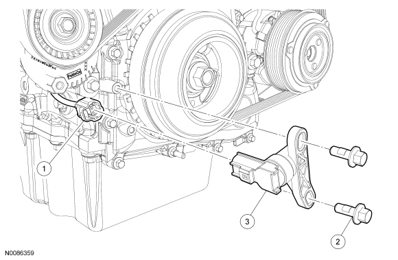 8. Remove the bolts and discard the CKP (Crankshaft Position) sensor.