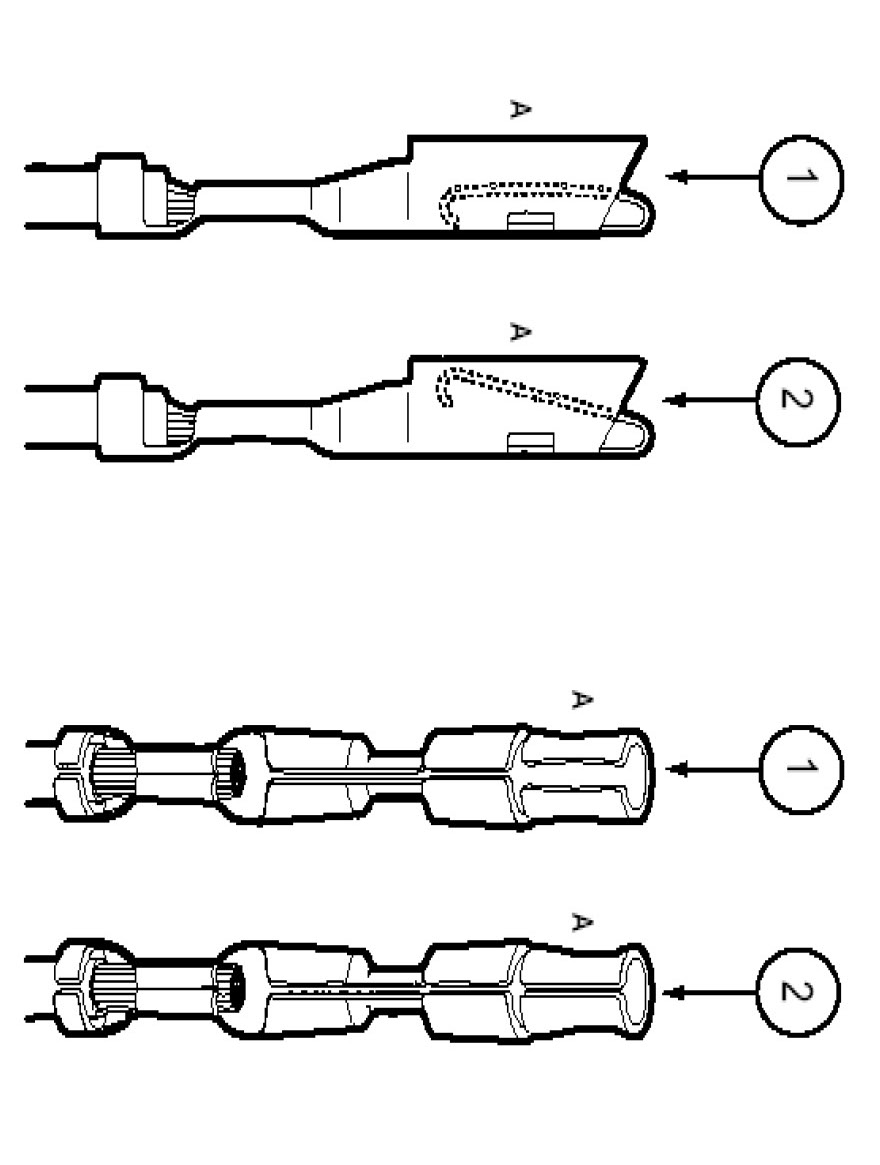 - Use heat shrinkable tubes marked with ES-1 (16-22 GA) or ES-2 (10-18 GA) to seat wire splice.