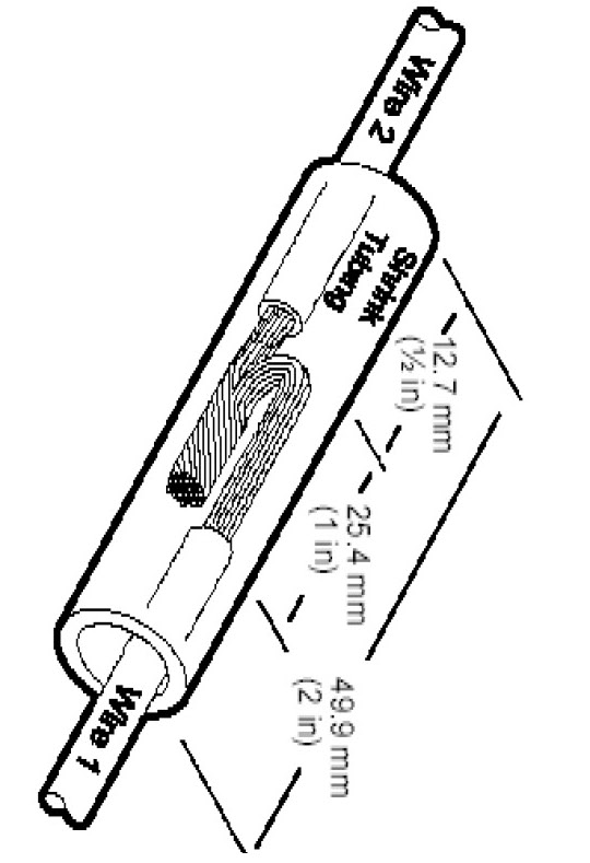 12. Evenly position supplied heat shrink tubing over wire repair.