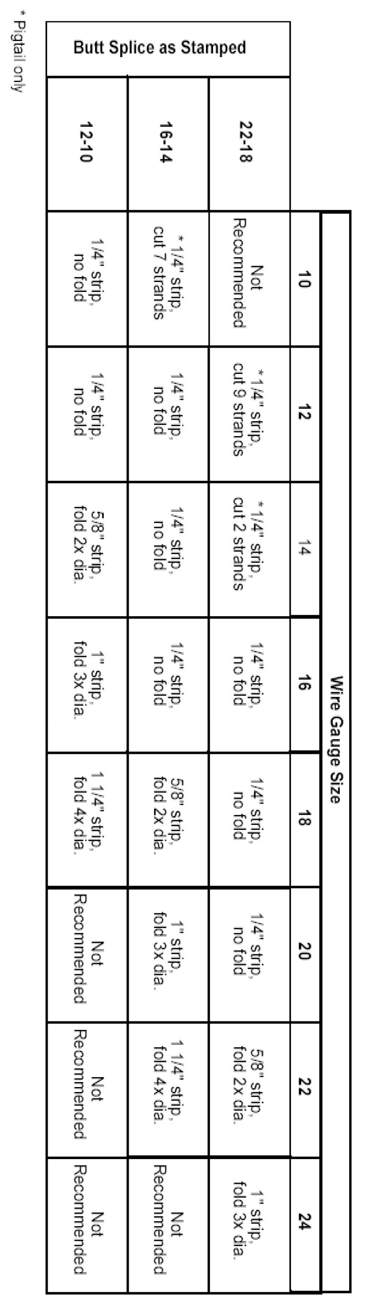 Recommended splicing method - Crimp (For 10-22 AWG Diameter Wire to Like Wire Diameter)
