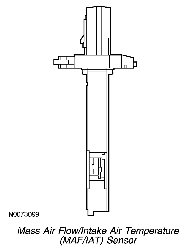 The MAF sensor uses a hot wire sensing element to measure the amount of air entering the engine. Air passing over the hot wire causes it to cool. This hot wire is maintained at 200°C (392°F) above the ambient temperature as measured by a constant cold wire. If the hot wire electronic sensing element must be replaced, then the entire assembly must be replaced. Replacing only the element may change the air flow calibration.