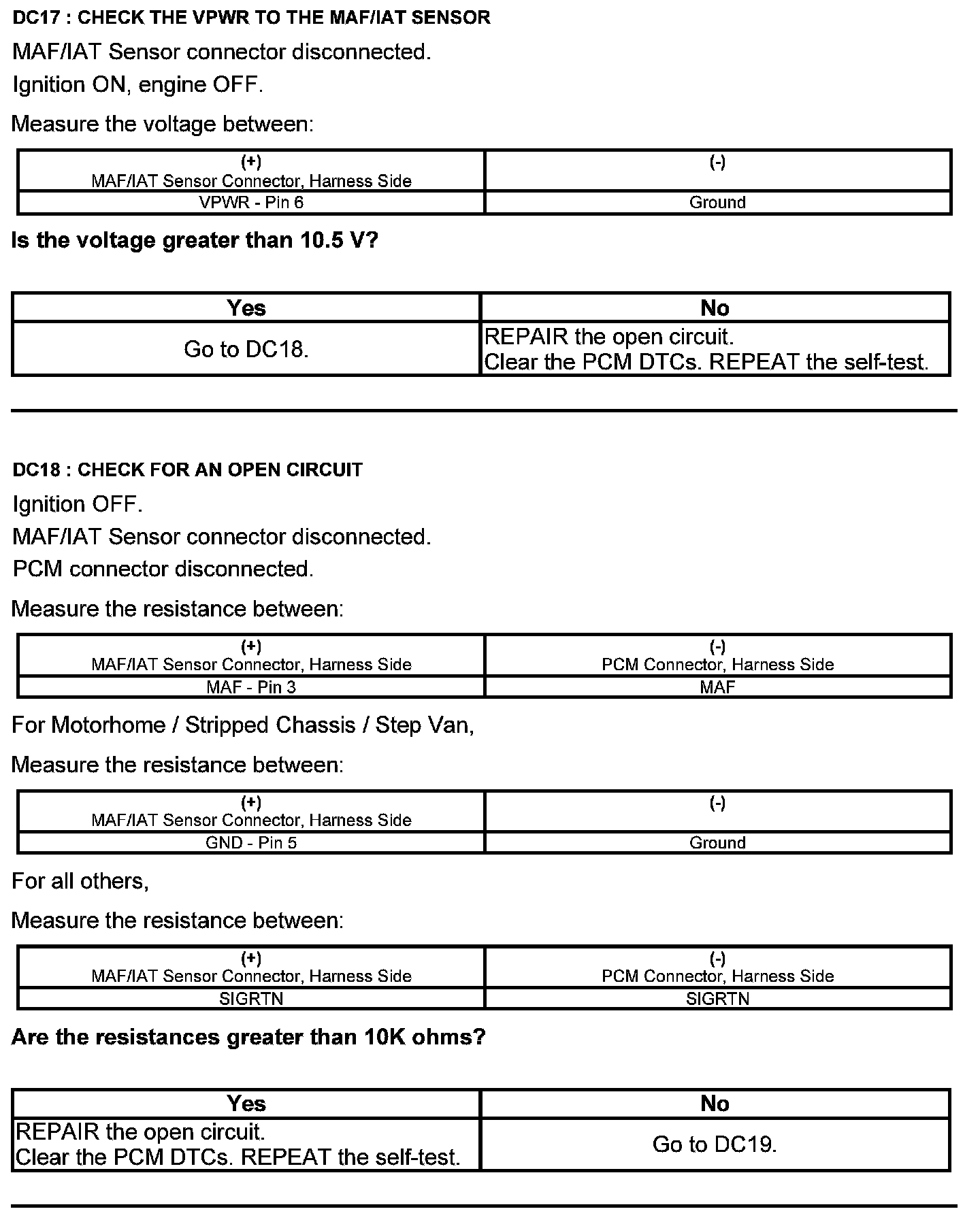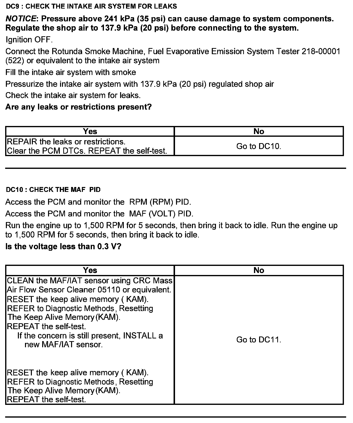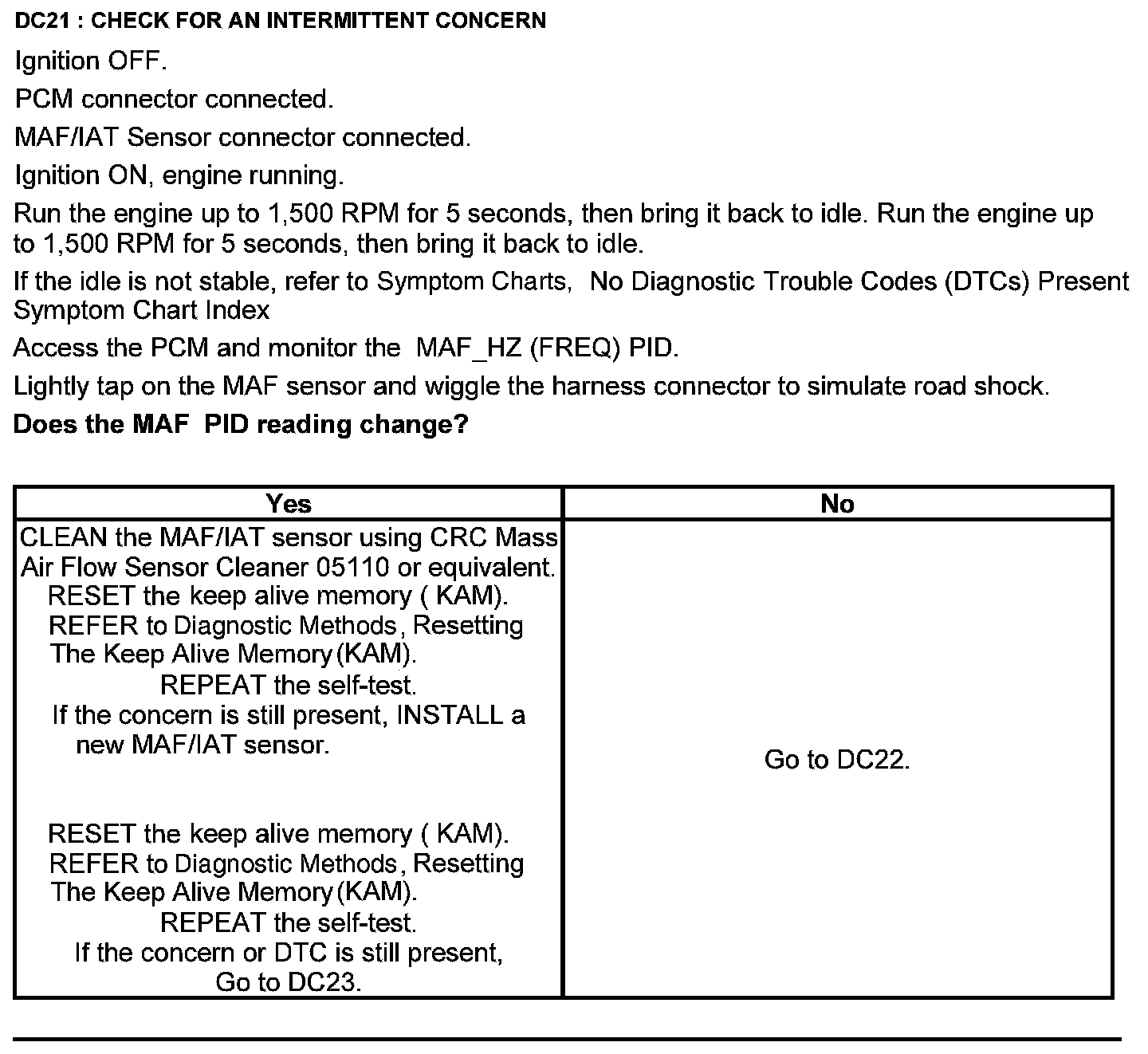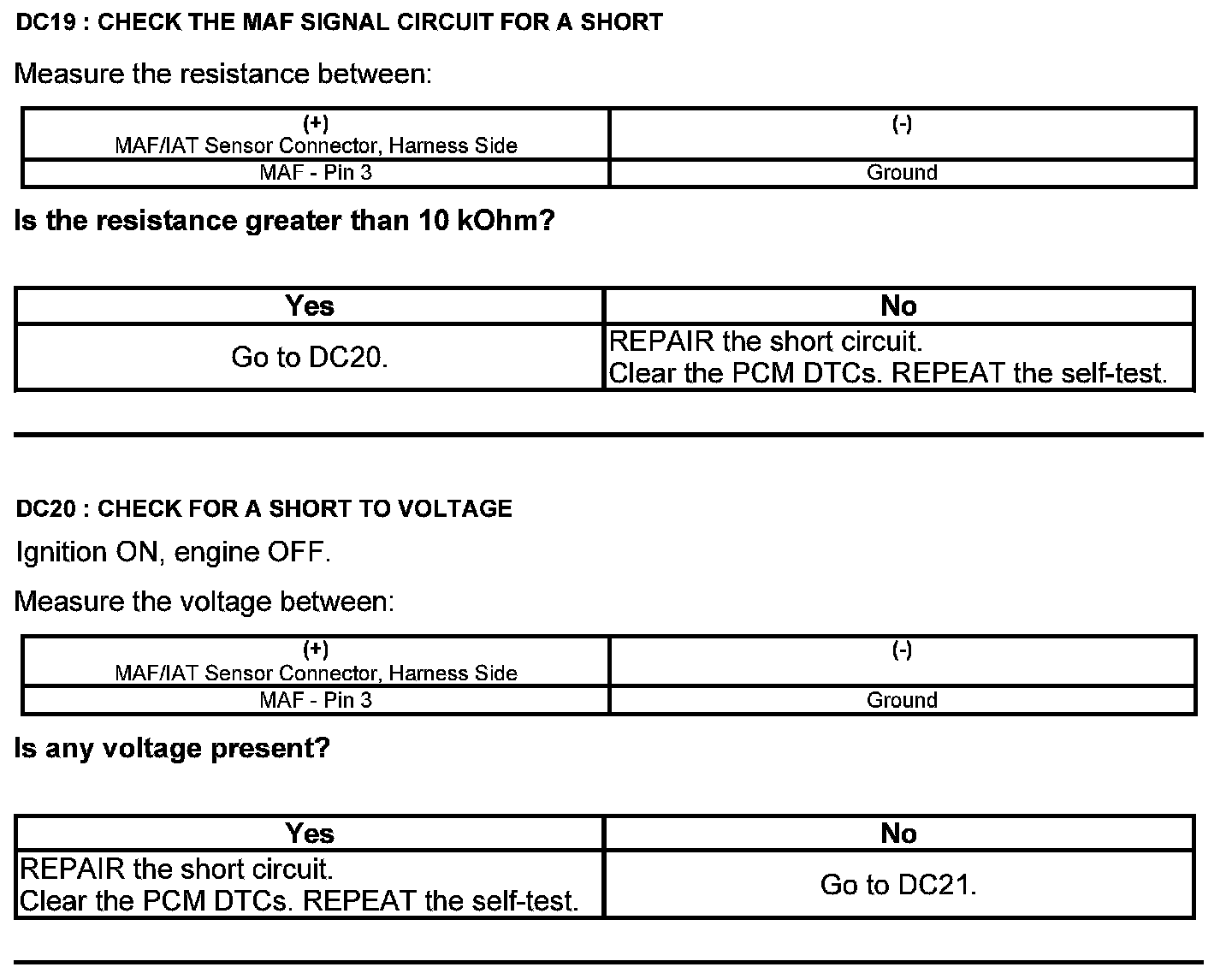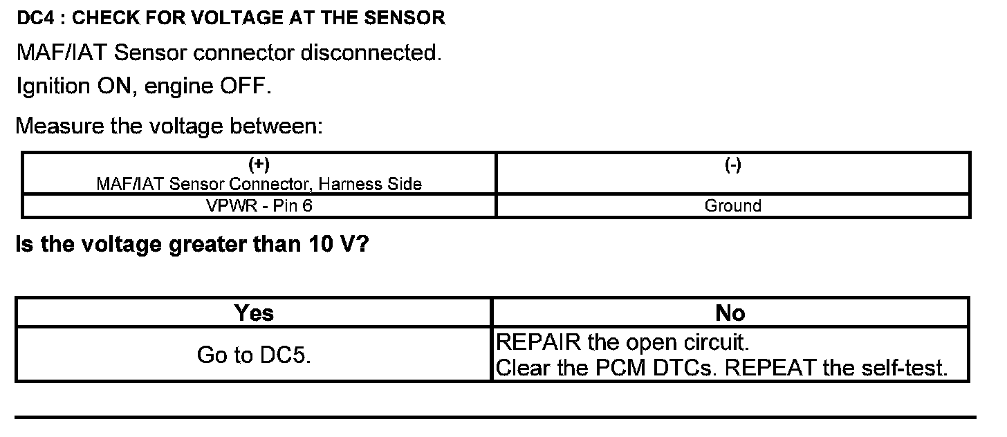 Test DC: Mass Airflow (MAF) Sensor
