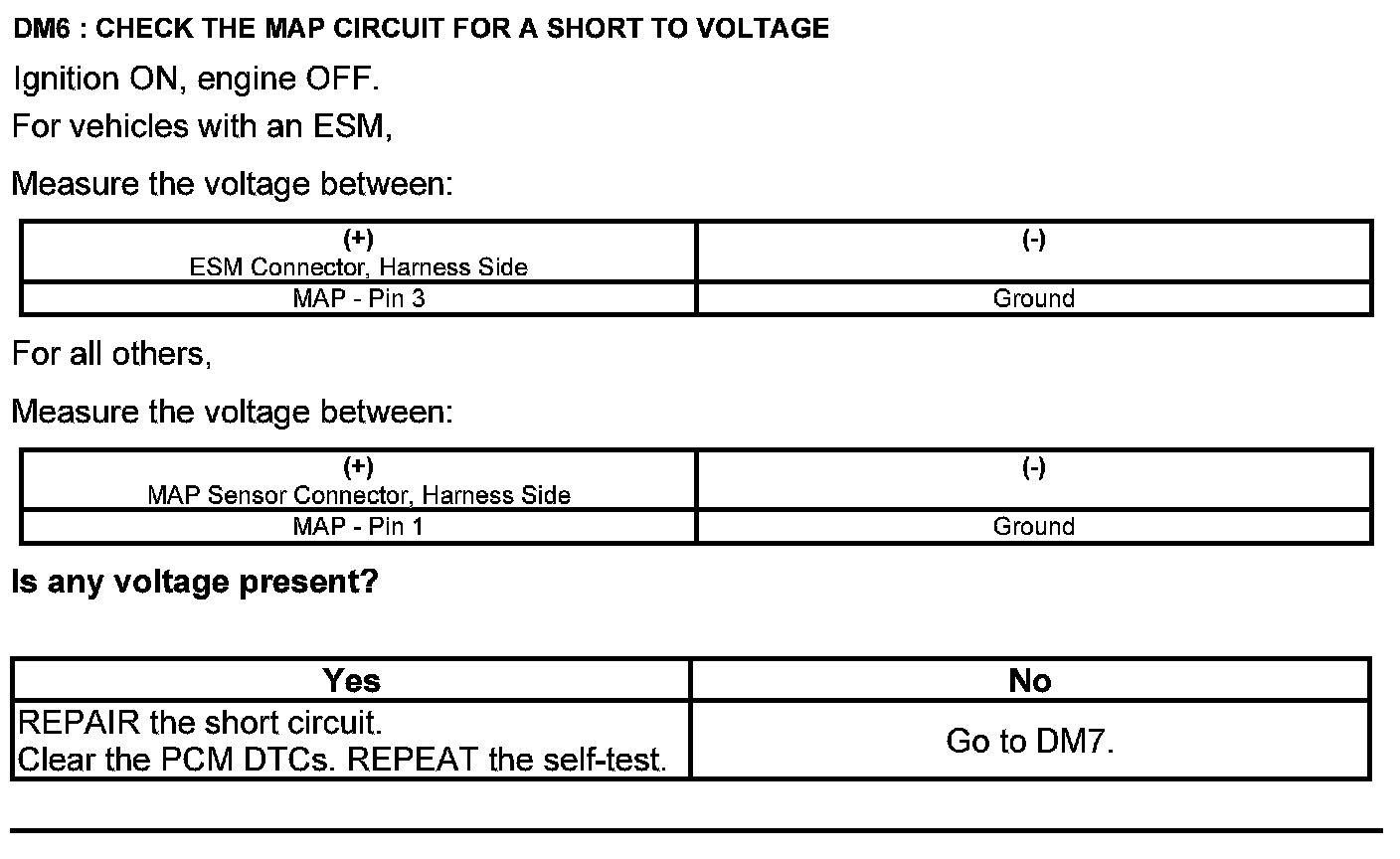 Test DM: Manifold Absolute Pressure (MAP) Sensor