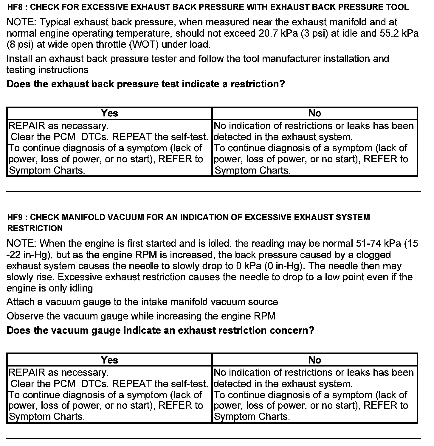 Test HF: Catalyst Efficiency Monitor and Exhaust Systems