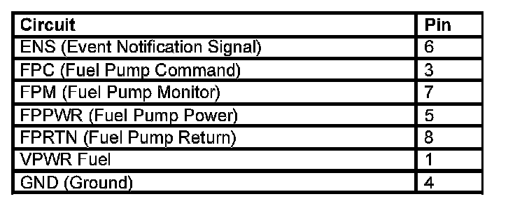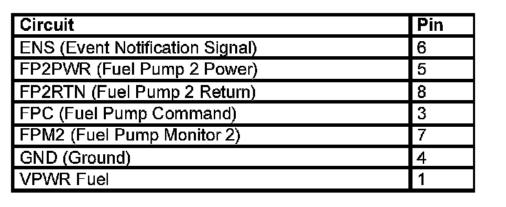 Fuel Pump Control Module Relay Connector - Refer to the Wiring Diagrams for schematic and connector information.