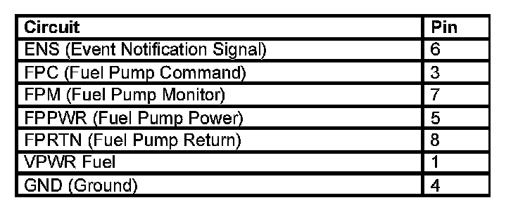 Fuel Pump Control Module Relay Connector - Refer to the Wiring Diagrams for schematic and connector information.