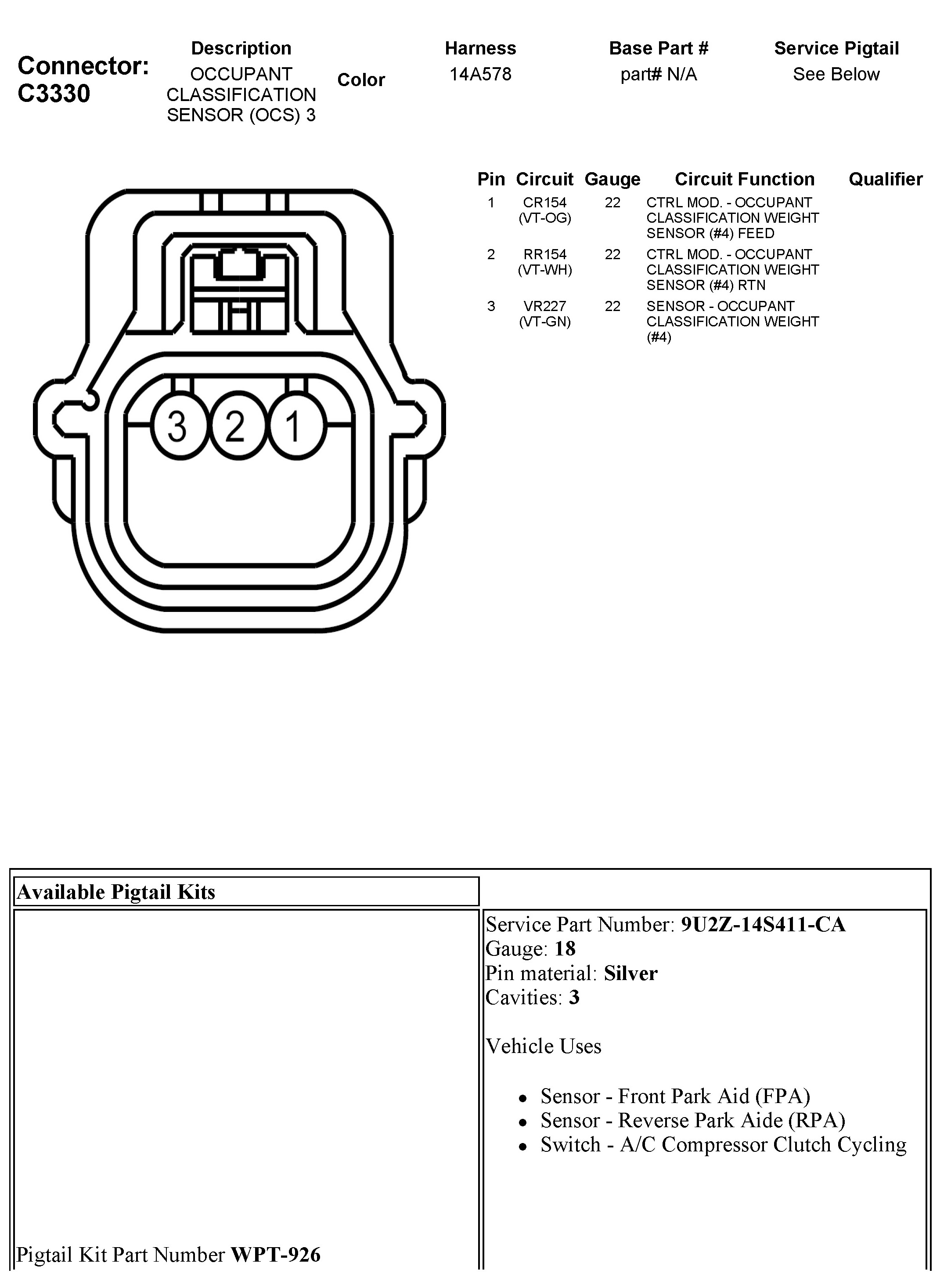 C3330 Occupant Classification Sensor (OCS) 3