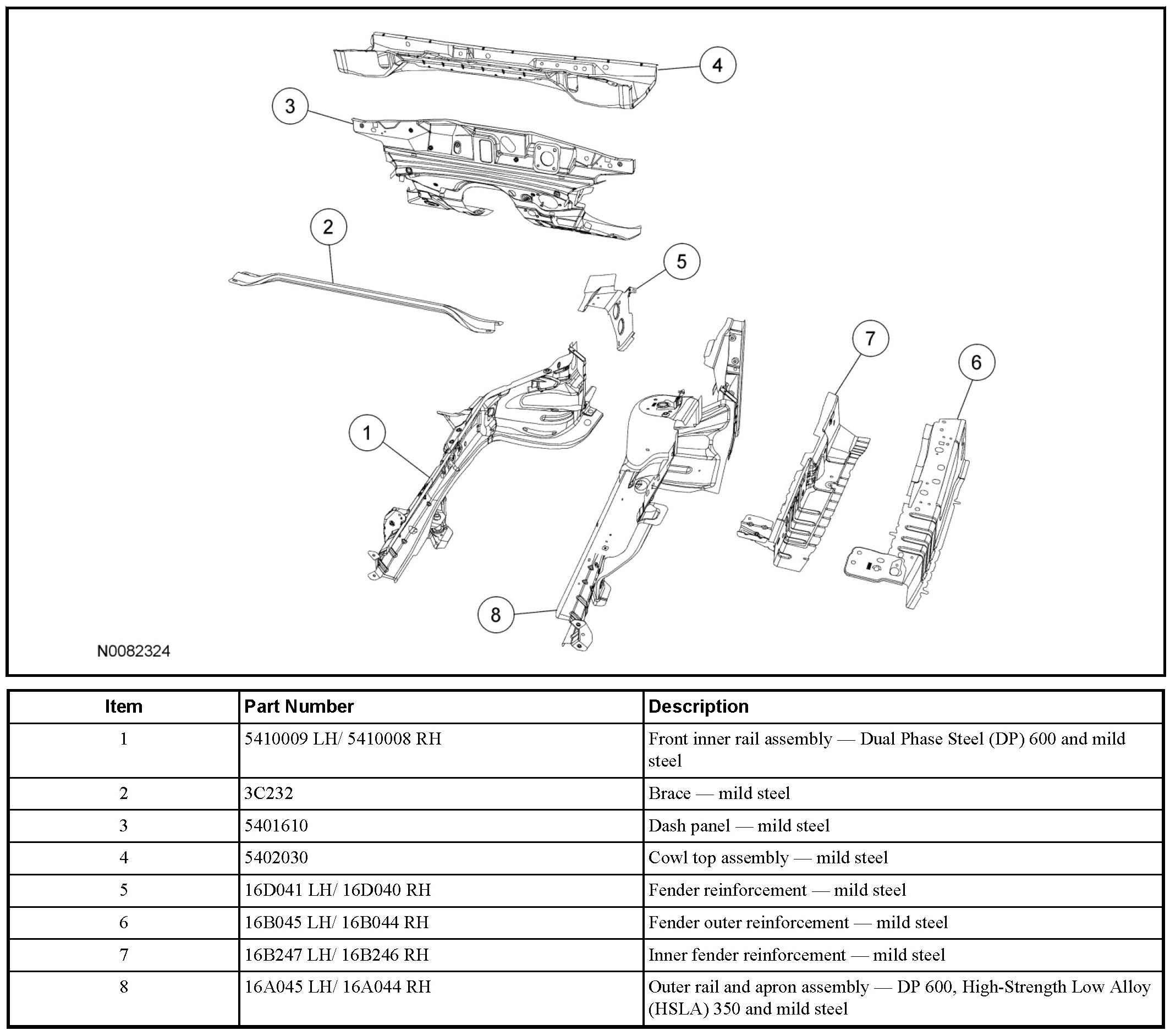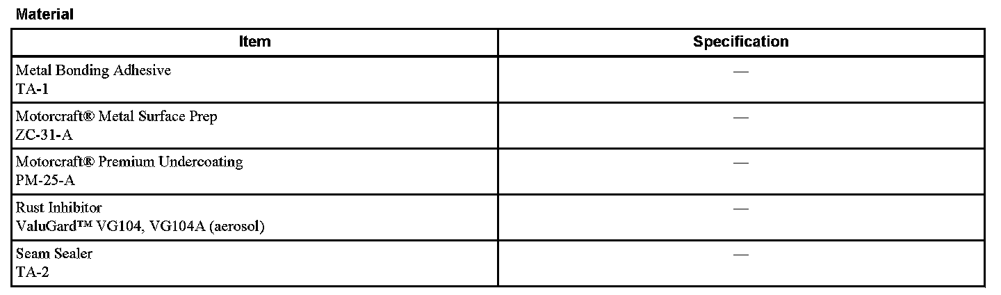 - Refer to the Ford Recommended Steel Repairability Matrix Chart in the Specifications portion for specific information regarding steel descriptions.