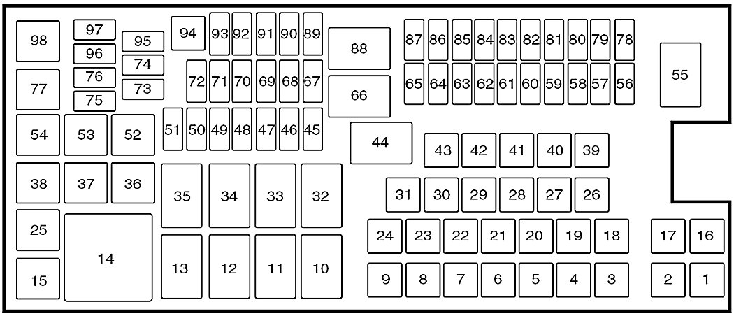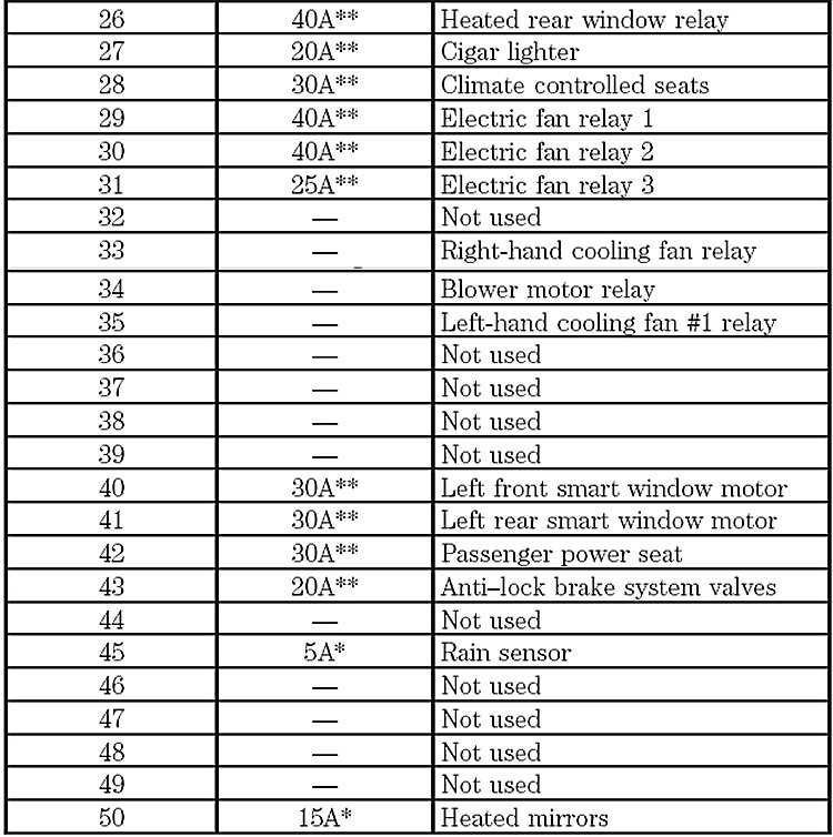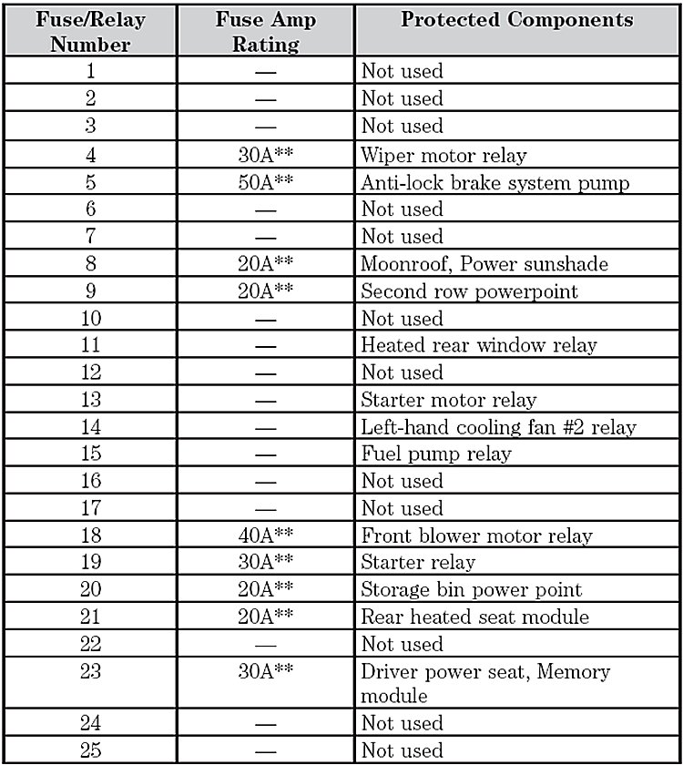 The power distribution box is located in the engine compartment. It has high-current fuses that protect your vehicle's main electrical systems from overloads. The high-current fuses are coded as follows: