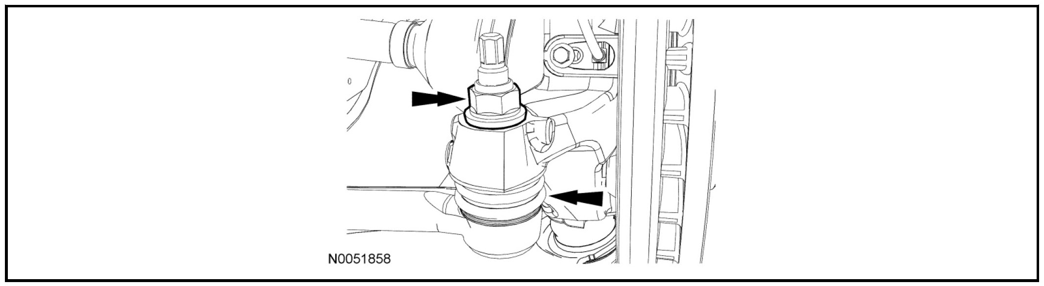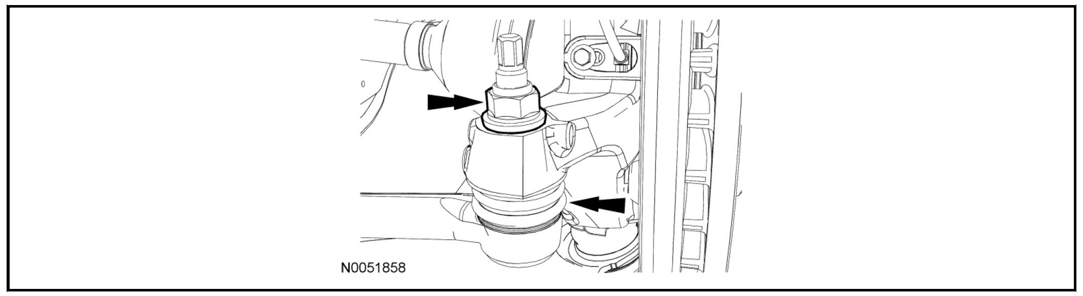 - Use care when releasing the lower arm and knuckle into the resting position or damage to the ball joint seal or Constant Velocity (CV) boot may occur.