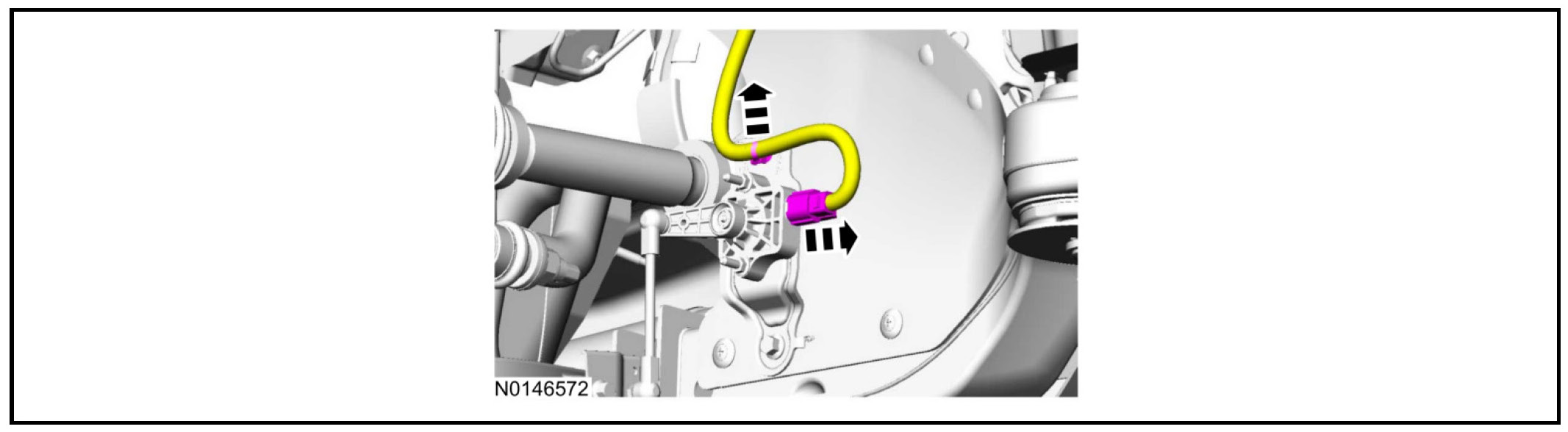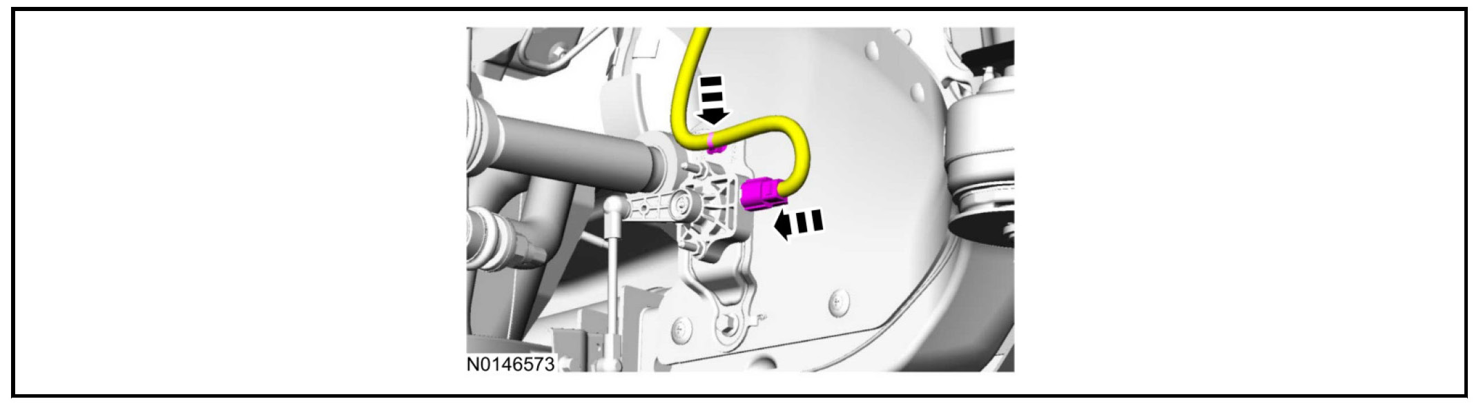 Disconnect the LH and RH height sensor electrical connectors and the harness retainers.