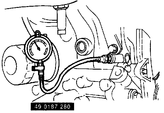 2. Connect the oil-pressure gauge (49 0187 280) to the pressure switch installation hole in the cylinder block.