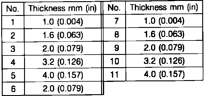 1. On 1986 B2000 & 1987-88 B2200 and B2600, shims Nos. 1 through 5 are used at left and right sides, shims Nos. 7 through 11 are used at front and rear left and right sides and shim No. 6 (models equipped with power steering) is used at rear left and right sides, Fig. 3.