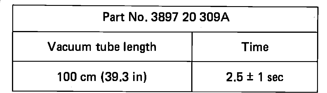 5. Release thumb from valve and check the time required for the vacuum reading to decrease to 100 mm-Hg from 400 mm-Hg. The specified time varies depending on the length of the tube Figs. 6 & 7.