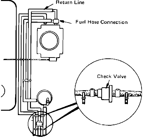 With the above change, a fuel check valve has been added in the fuel return line to prevent fuel from flowing back into the carburetor from the fuel tank.