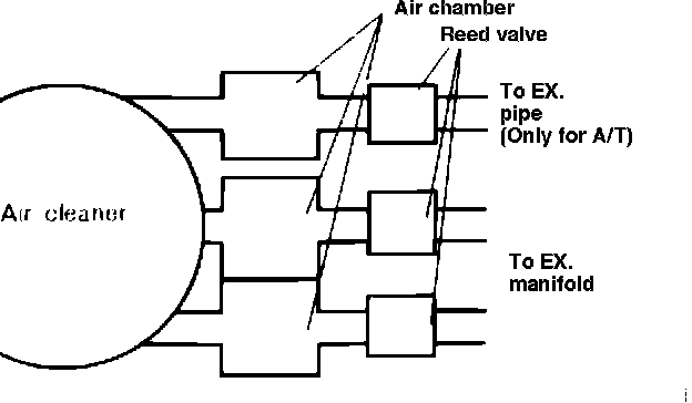 Two reed valves are now used on Federal M/T models and three reed valves are used on federal A/T models to aid in the reduction of HC & CO.