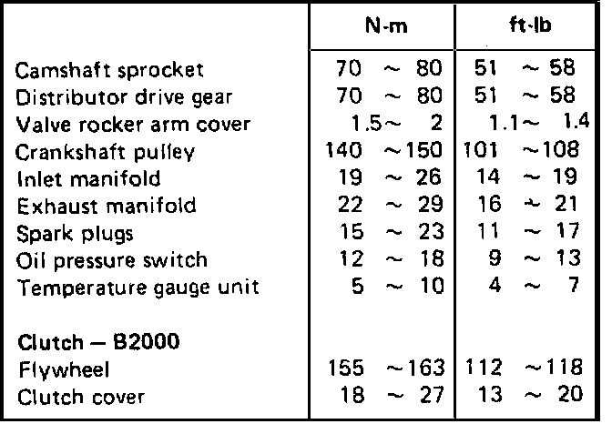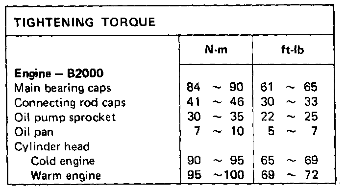 Engine Torque Specifications: