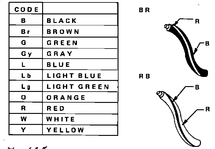 The first letter indicates the basic color for the wire, and the second letter indicates the stripe color.